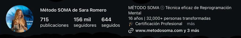 Es economista, emprendedora y creadora del Método SOMA, una técnica de reprogramación mental basada en las emociones que elimina patrones limitantes del subconsciente. Tras una carrera en consultoría estratégica y un proceso personal de transformación, unió neurociencia, física cuántica y crecimiento humano para dar forma a su método.